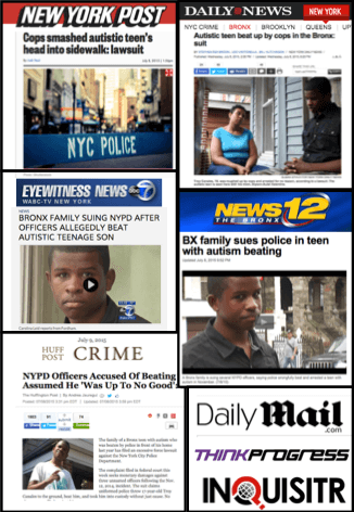 DNAInfo Article: https://www.dnainfo.com/new-york/20150708/fordham/nypd-officers-beat-autistic-teen-front-of-his-home-lawsuit-says#.VZ0UjC7vqIY.mailto
