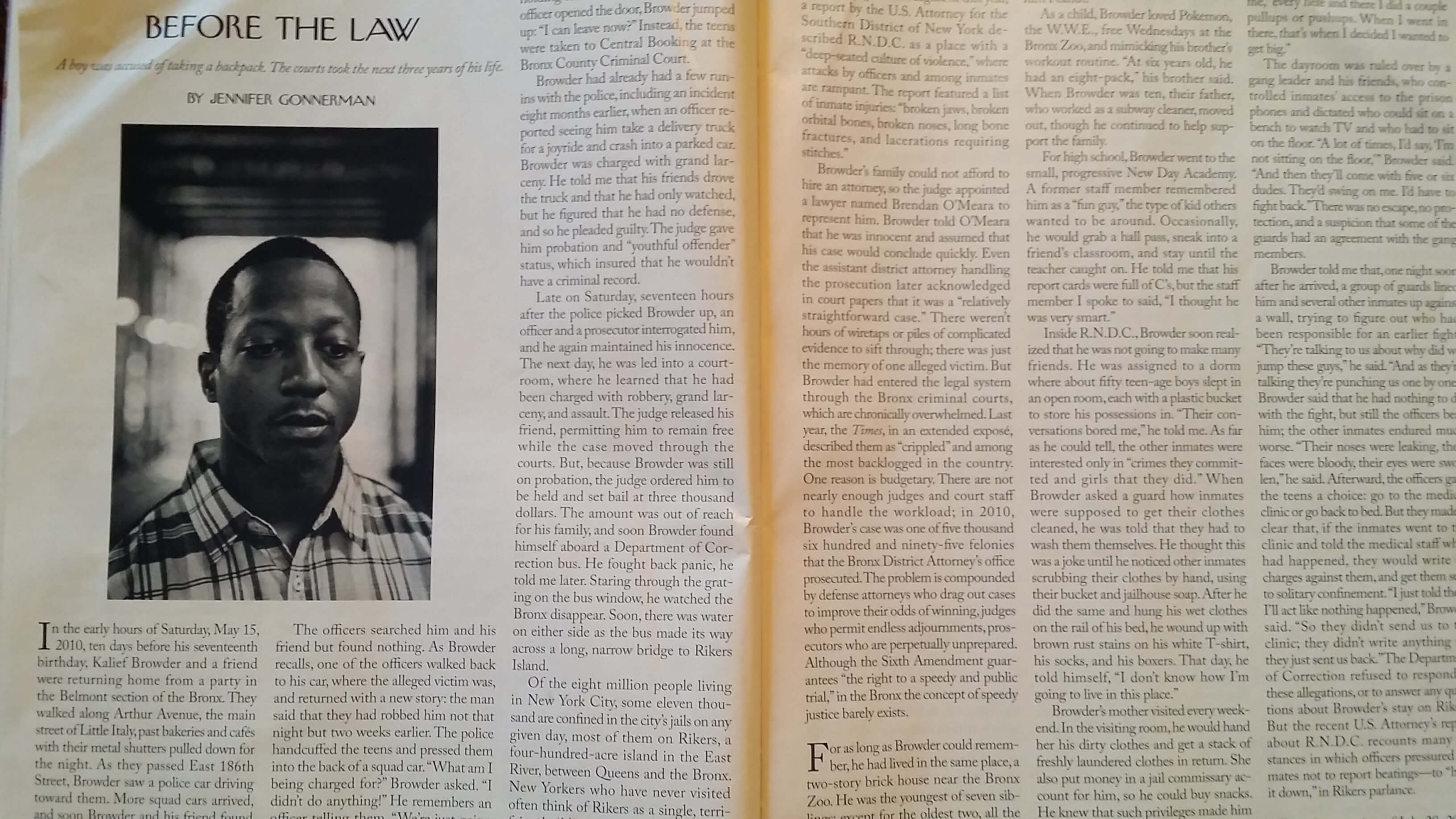 Please click the link below to read a recent New Yorker Article about Rikers Island: